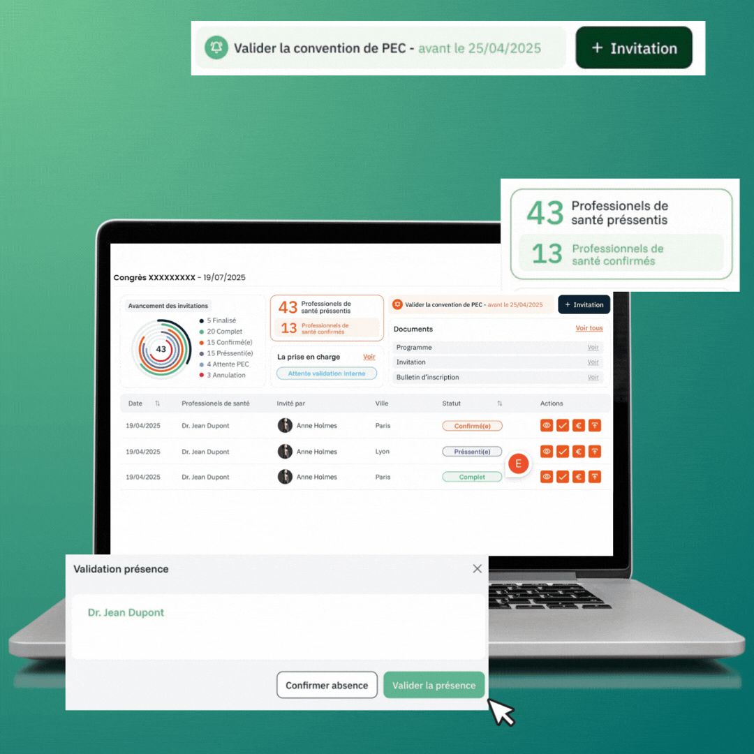 • Blocages intelligents : Impossible d'inviter un étudiant ou de financer un accompagnant. Le système veille pour vous.